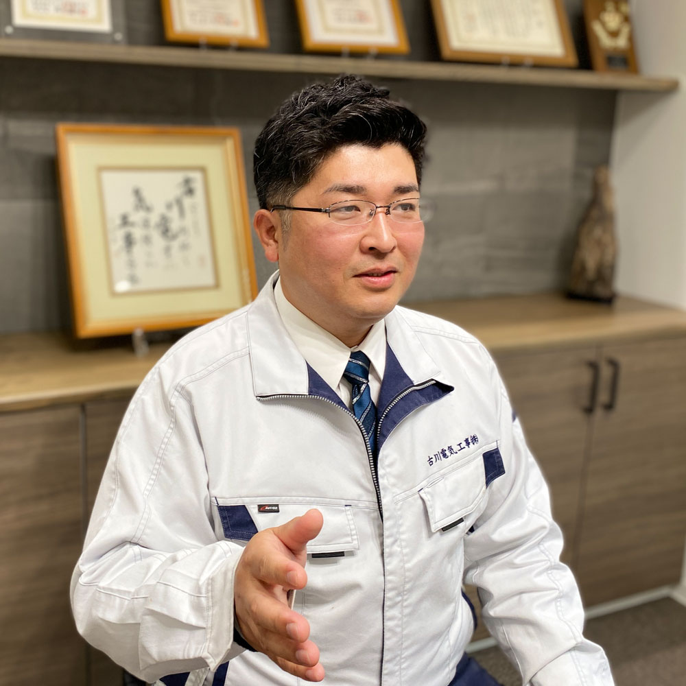 元々は教育関係の仕事をしていましたが、狭い世界にとどまるのではなく、もっと幅広い分野で活躍できる人間になりたいと思い、多様な現場で経験を積める電気工事業にチャレンジしました。