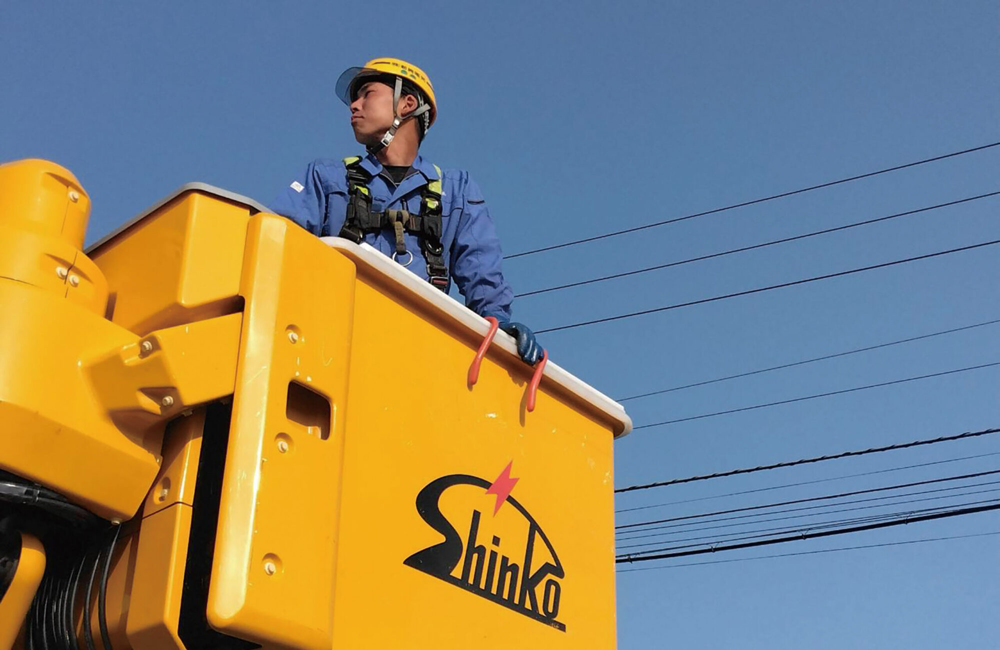 • 高所作業車を使用し、実際の配電工事に携わるようになる